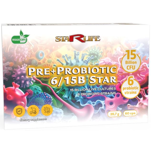PRE+PROBIOTIC 6/15B STAR - prevencia pre vytvorenie (udržanie) zdravého mikrobiómu, Starlife 60 kapsúl